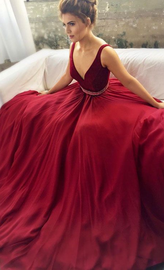 Sexy Burgundy Prom Dresses Maroon Prom Dress V Neck Prom Dress