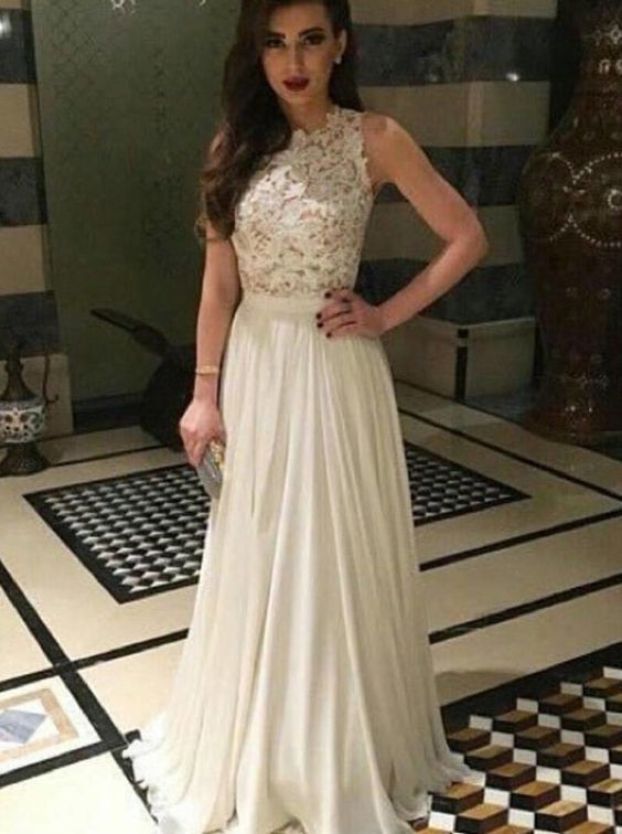 White Long Prom Dresses 2019 A Line Sleeveless Chiffon Cute For
