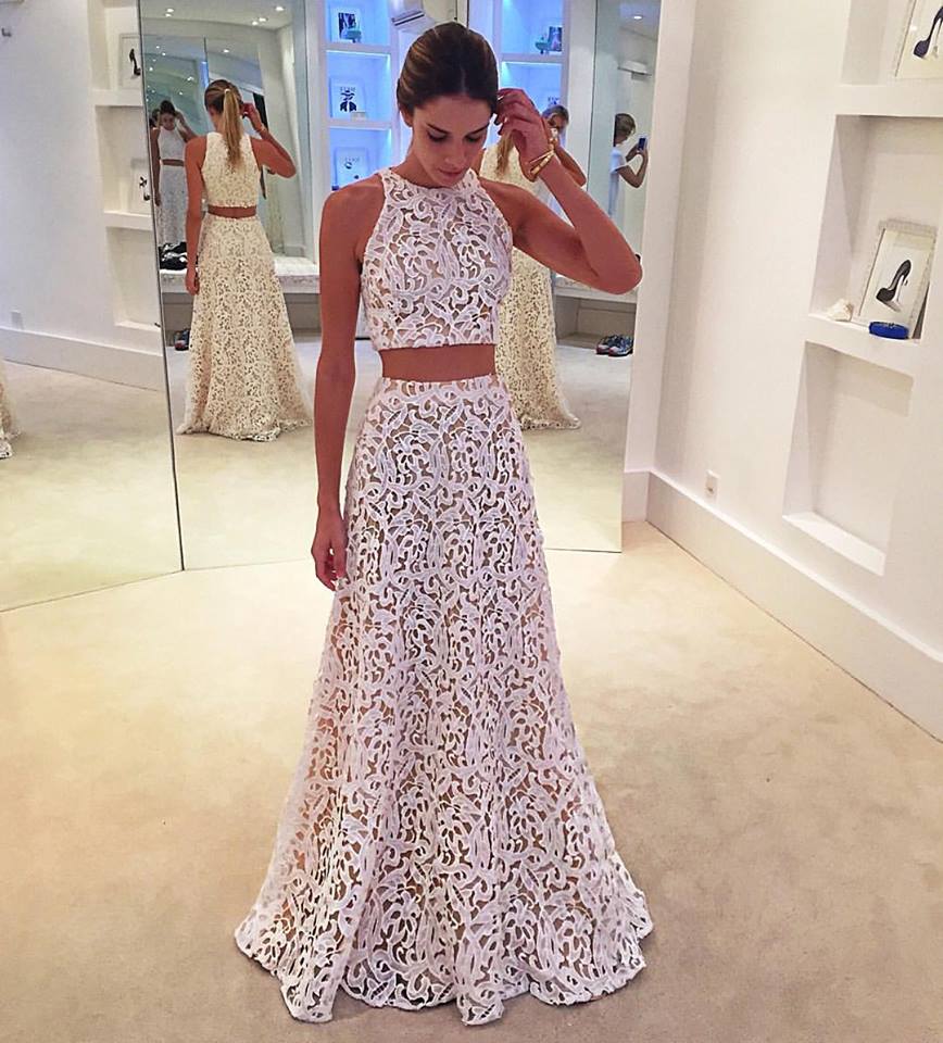 Two Piece White Spandex Long Engagement Prom Dress Xdressy