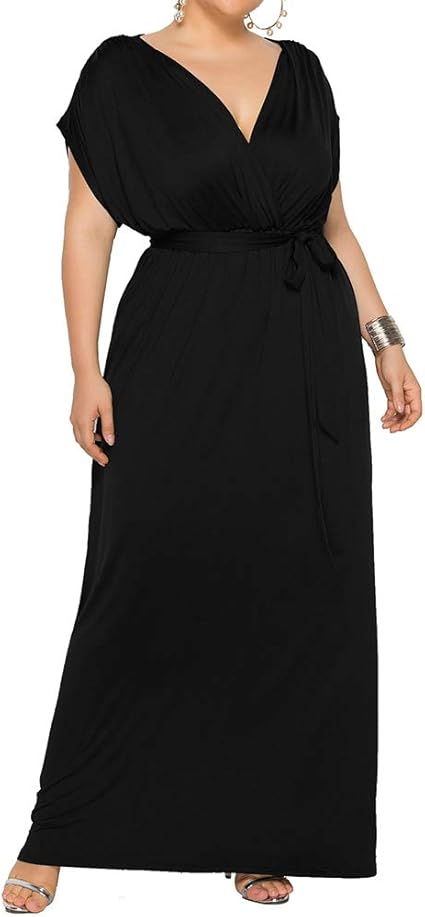 Lexiart Plus Size Formal Dress Sexy V Neck Short Sleeve Long