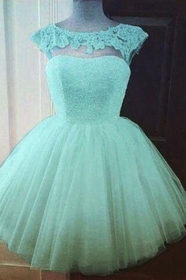Scoop Neck Light Blue Short Prom Dresses Lace Girls Junior