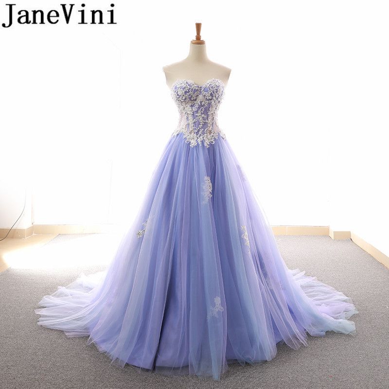 Janevini Lavender Beaded Junior Prom Dresses Long Sweetheart Lace