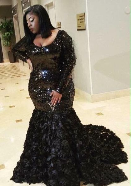 Glitter Black Mermaid Prom Dresses Long Sleeves Plus Size Special