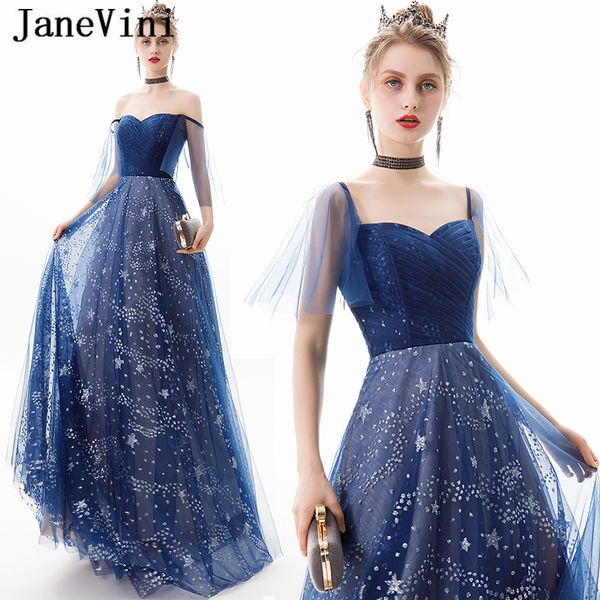 Janevini Vintage Navy Blue A Line Long Prom Dresses 2019
