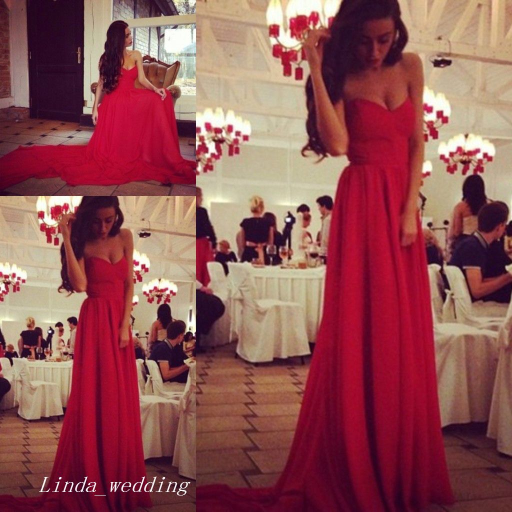 Beautiful Simple Elegant Red Chiffon Long Prom Dresses Party