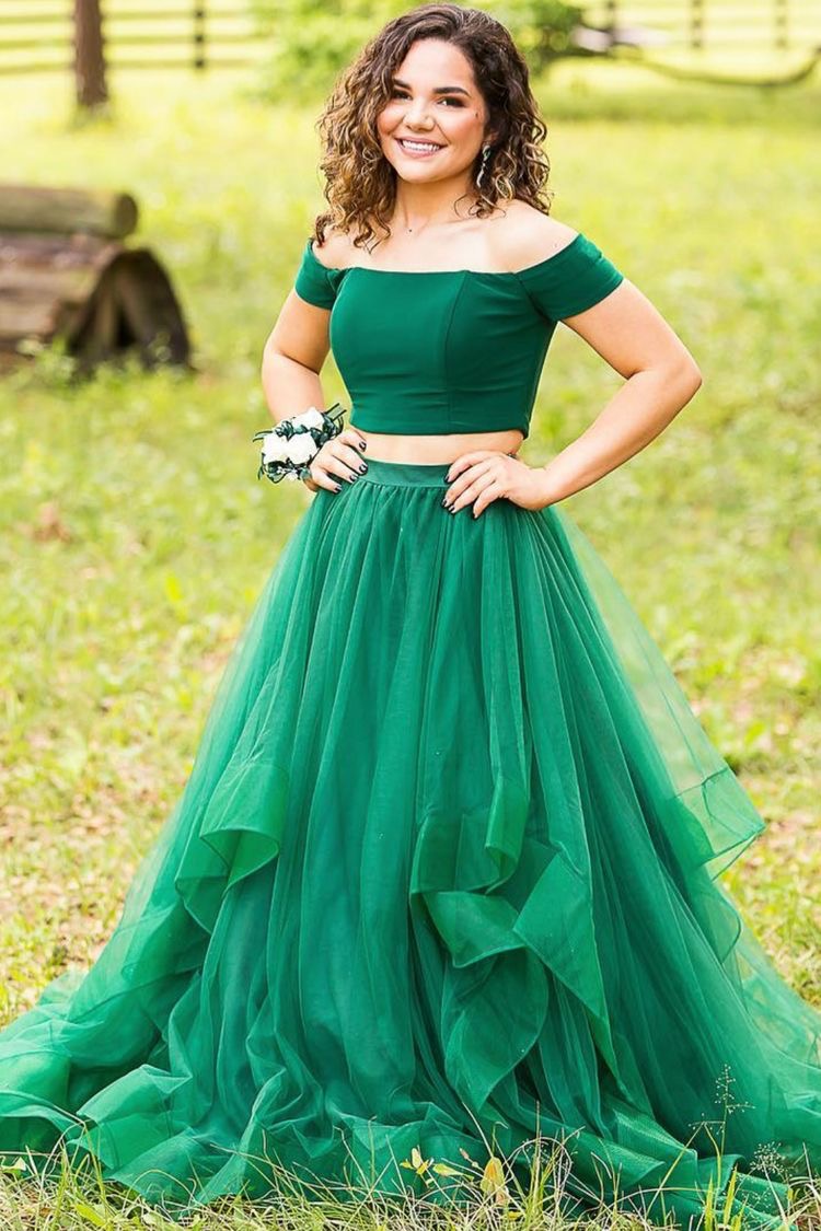 Off The Shoulder Green Two Piece Long Prom Dresses Under 100 On Luulla