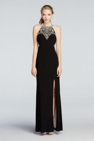 Beaded High Neck Cut Out Jersey Prom Dress David S Bridal