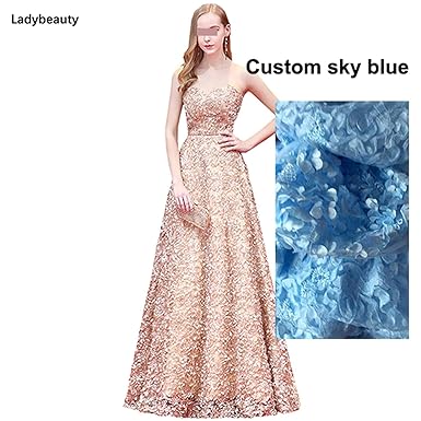 Shop 2019 Sweetheart Sky Blue 3d Floral Applique Long Prom Dresses