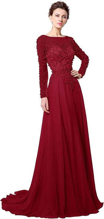 Long Sleeve Burgundy Prom Dresses Ball Gown 2020 Lace Applique 3d