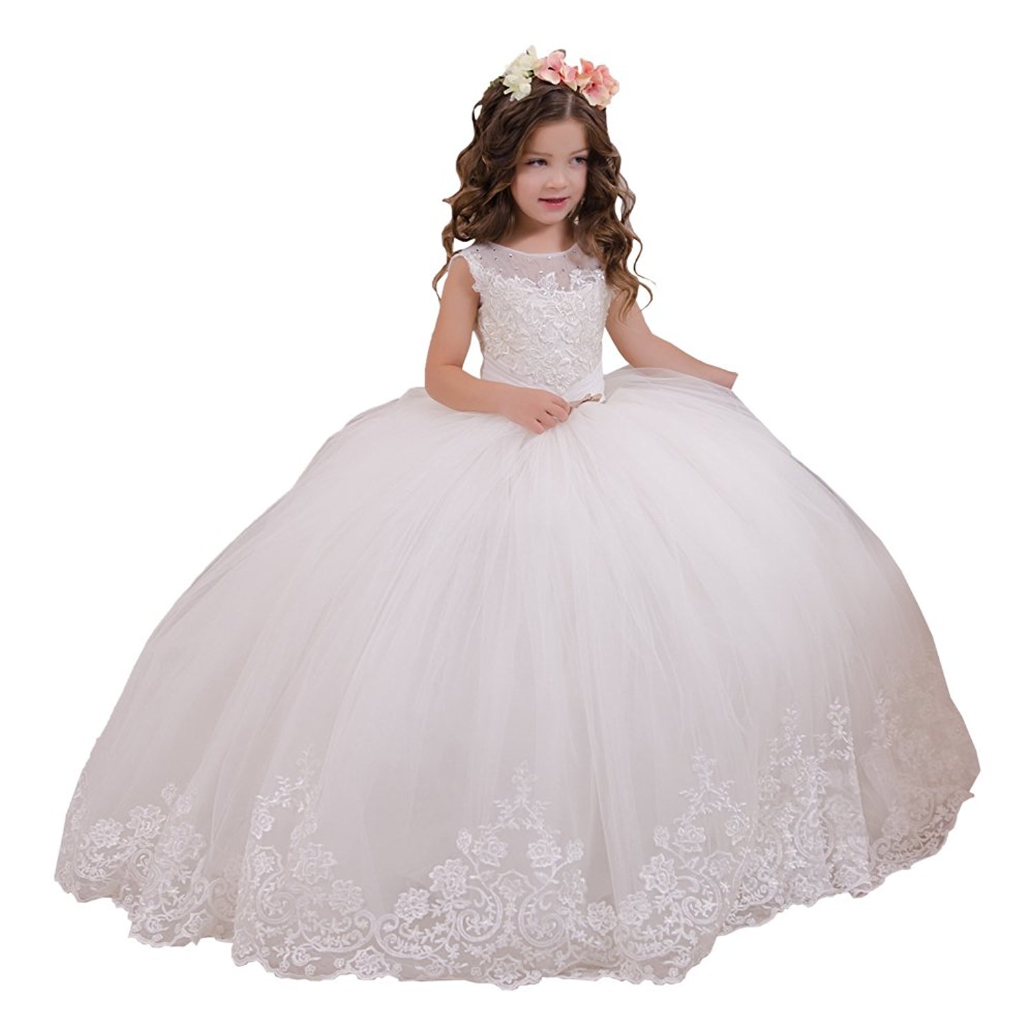 Amazon Com Fancy A Line Lace Flower Girl Dress 2 12 Year Old