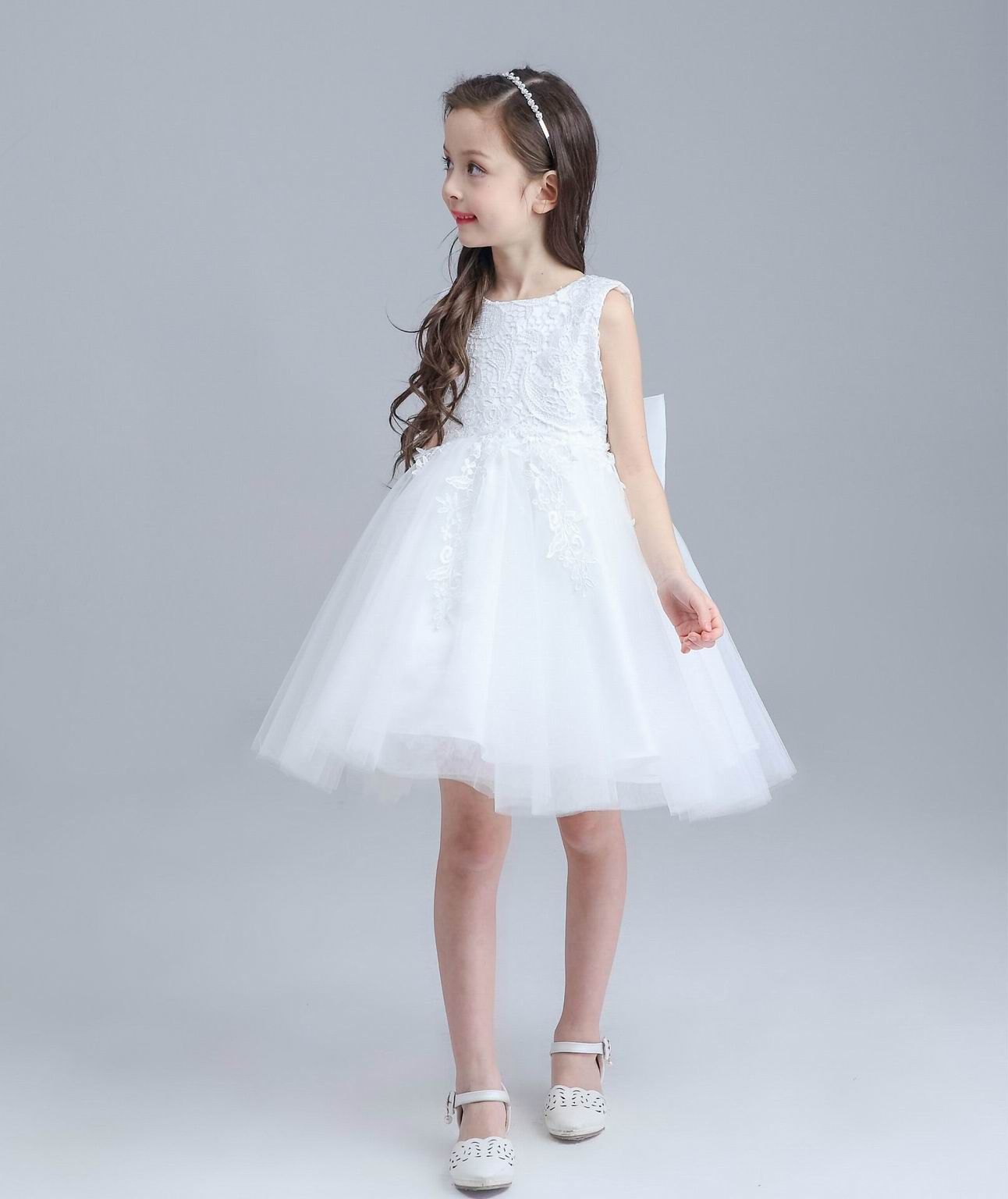 S 080 Girl S Lace Tulle Bowknot Formal Dress Size 4 12 Years Old