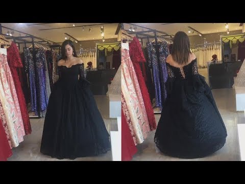 Black Lace Puffy Sleeved Off The Shoulder Prom Ball Gown Youtube