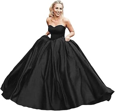 Princess Ball Gown Black Prom Dresses Long Sweetheart Simple Satin