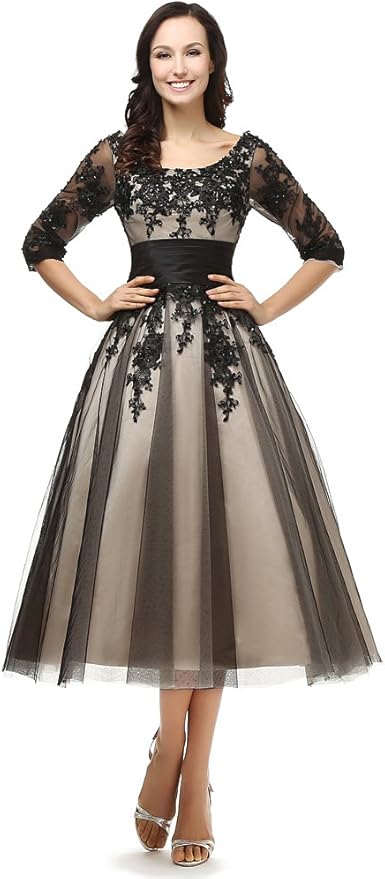 Amazon Com Kivary Tulle Champagne And Black A Line Tea Length