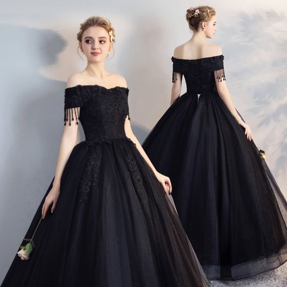 Off The Shoulder Black Ball Gown Prom Dress Ball Dresses Ball