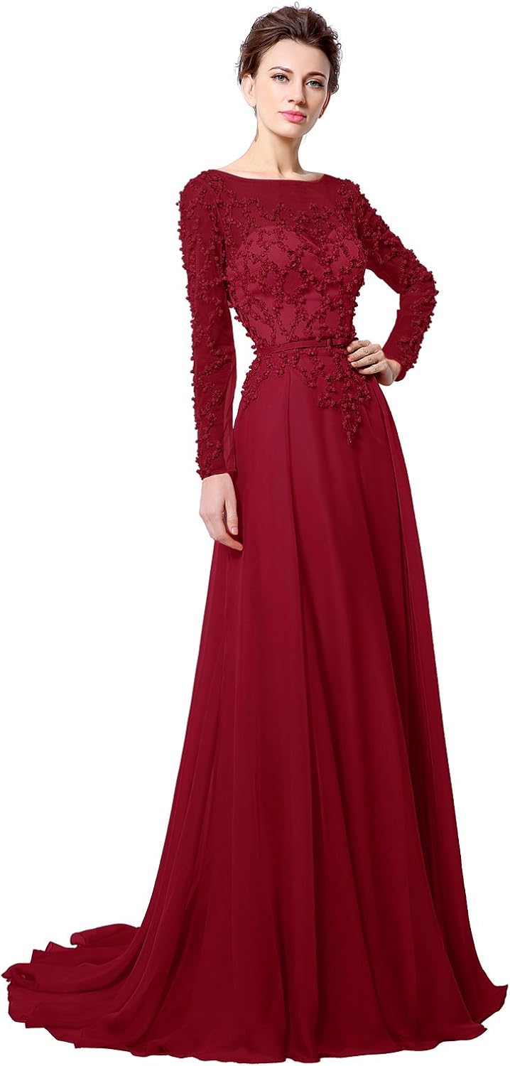 Burgundy Long Prom Dresses With Sleeves Fashion Dresses