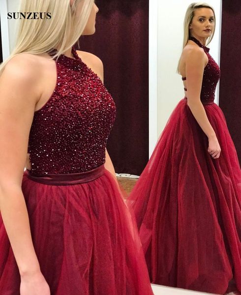 Honey Dress Sexy Burgundy Halter Beaded Bodice A Line Tulle