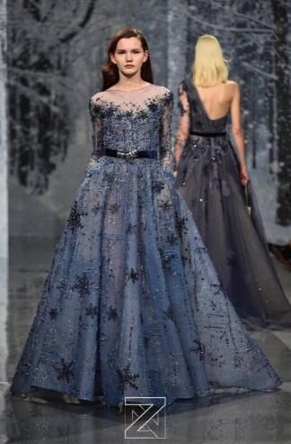 Luxury Ziad Naked Prom Dresses Sheer Bateau Neck Long Sleeve