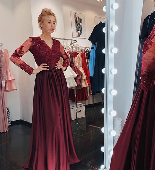 Burgundy Long Prom Dresses With Sleeves Fashion Dresses