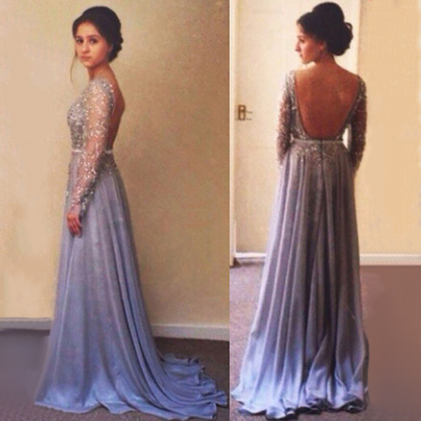 Custom Backless Prom Dress Backless Evening Dresses Long Sleeves