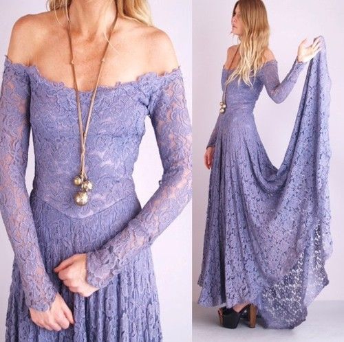 Gray Tulle Lace Long Sleeves Off Shoulder Long Prom Dresses
