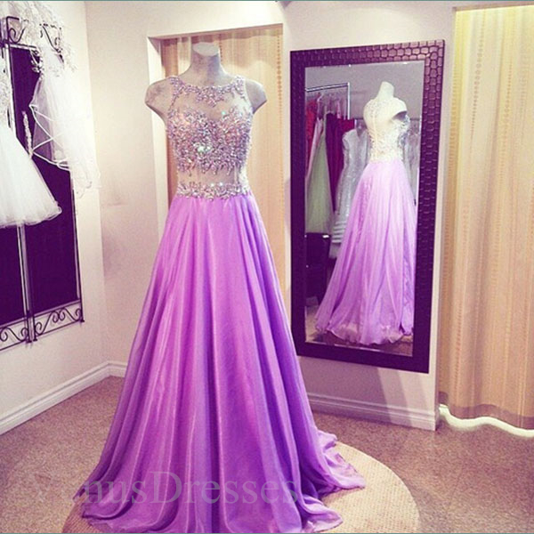 Light Purple Chiffon Prom Dresses Crystals Women Party Dresses On