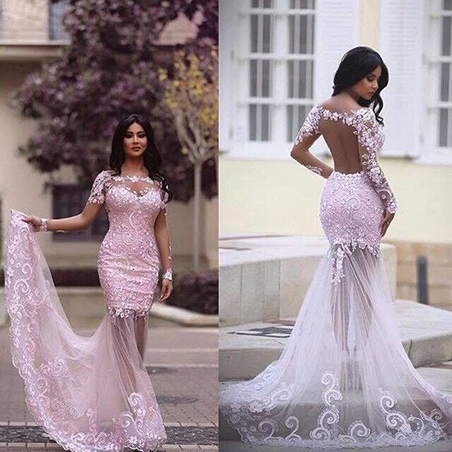 Light Pink Long Sleeve Sheer Prom Dress Lunss