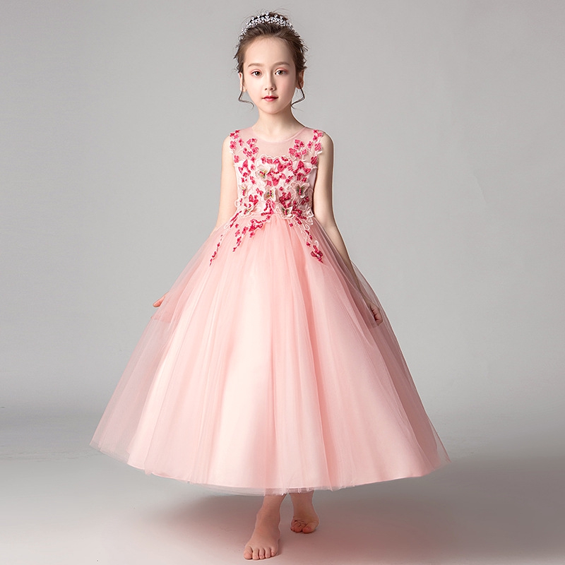 Luxury Children Girls Flowers Long Prom Gowns Teenagers Party