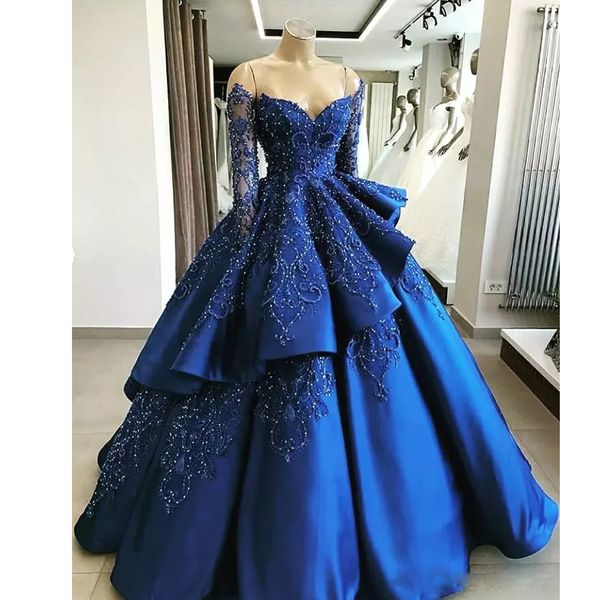 Chic Beautiful Royal Blue Prom Dresses 2018 Ball Gown Lace