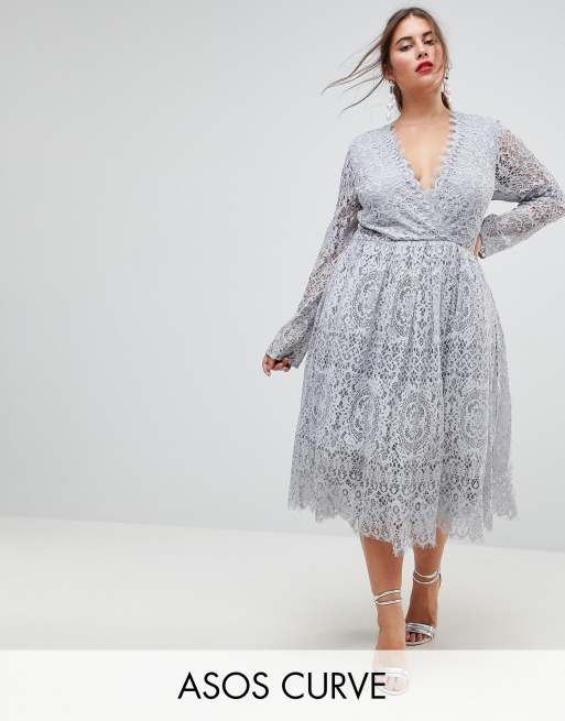 Asos Curve Long Sleeve Lace Midi Prom Dress Grey Women S Dresses