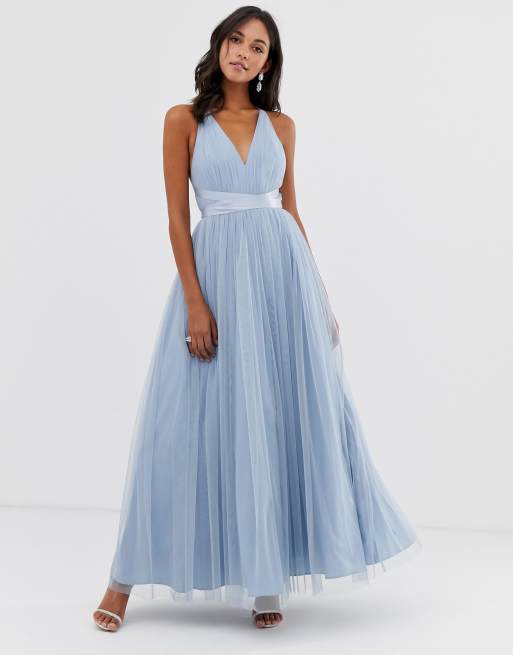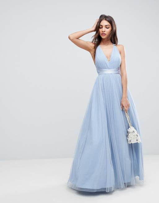 Asos Design Premium Tulle Maxi Prom Dress With Ribbon Ties Asos