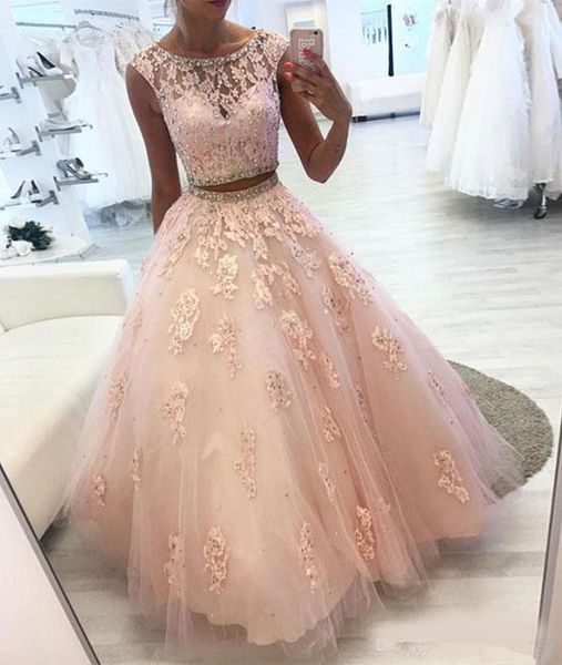 Modest Two Pieces Prom Dresses Lace Beads Sequins Tulle Party