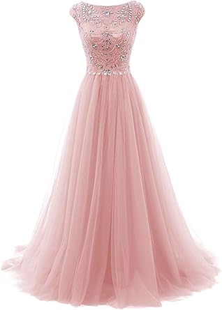 Amazon Com Fashion Dress Women S Beads Long Prom Dress Tulle Cap