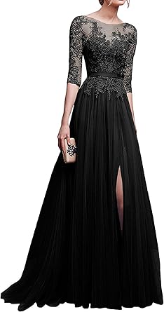 Amazon Com Misshow Applique Tulle 3 4 Sleeves Long Prom Dresses