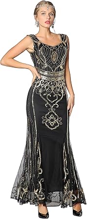 Amazon Com Metme Sequin Beaded Long Dresses Gatsby Theme Party