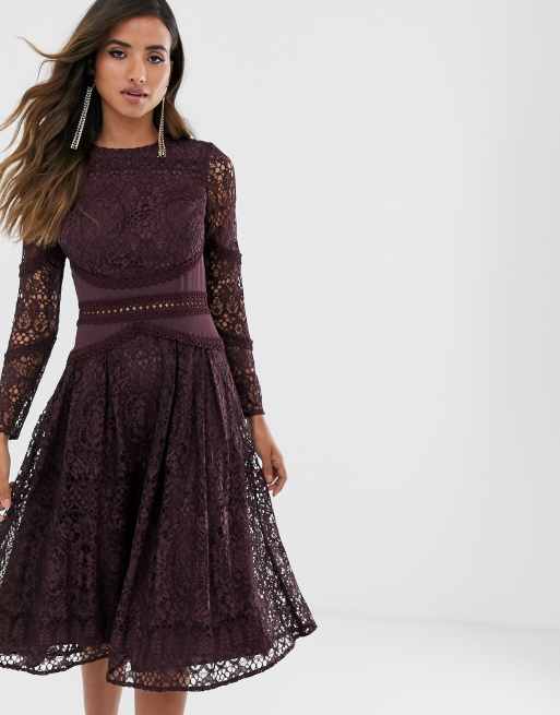 Asos Wedding Lace Long Sleeve Midi Prom Dress Amaliah