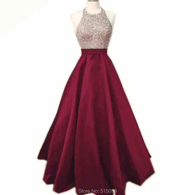 Long Prom Dresses Burgundy Prom Dresses Halter Prom Dress Open