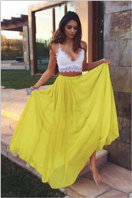 Prom Dress Two Piece Prom Dress Long 2018 Prom Dress Yellow