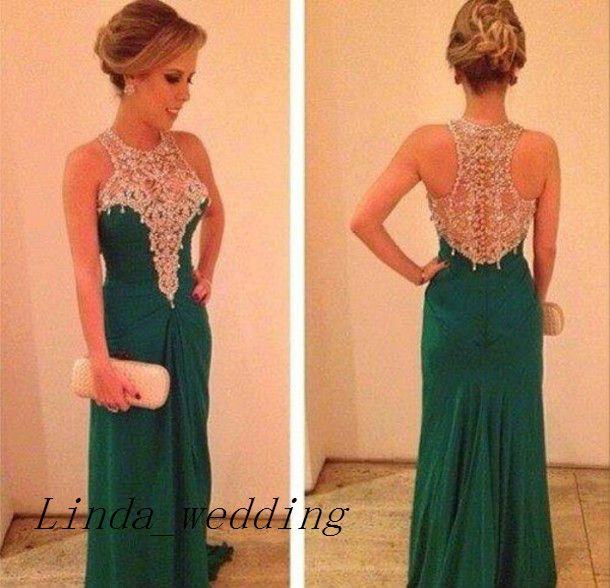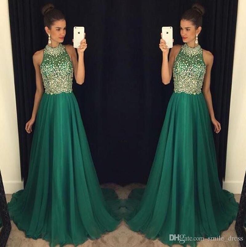 Prom Dress 2017 Beading Emerald Green Prom Dress Backless Prom