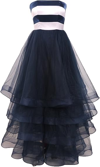 Tiered Tulle Long Evening Gowns Women Striped Corset Homecoming