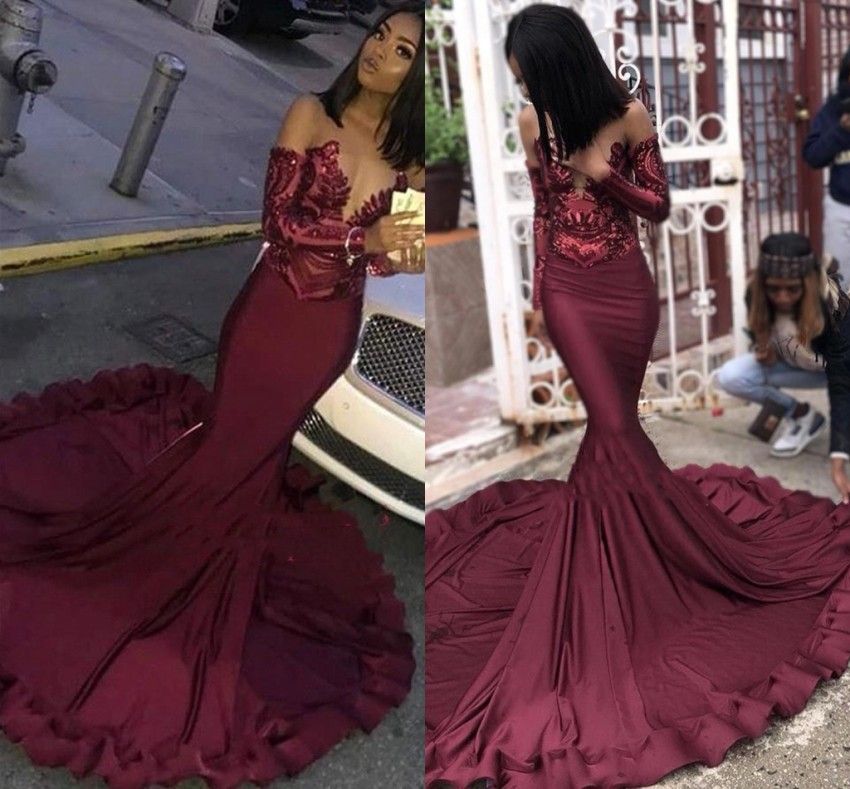 139 99 Burgundy Long Prom Dresses 2019 Mermaid Long Sleeves