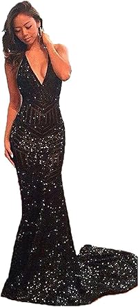 Sexy Long Sequin Prom Dresses Open Back Evening Gowns Alinanova