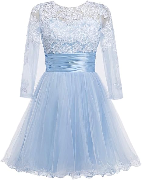 Amazon Com Charmingbridal Full Sleeve Light Blue Prom Dress Short
