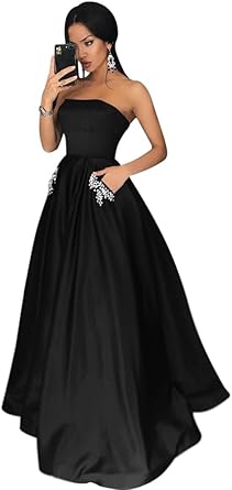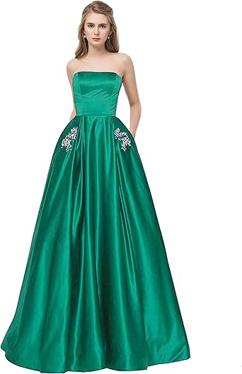 Strapless Prom Dress With Pockets Satin Long Prom Dress 11976