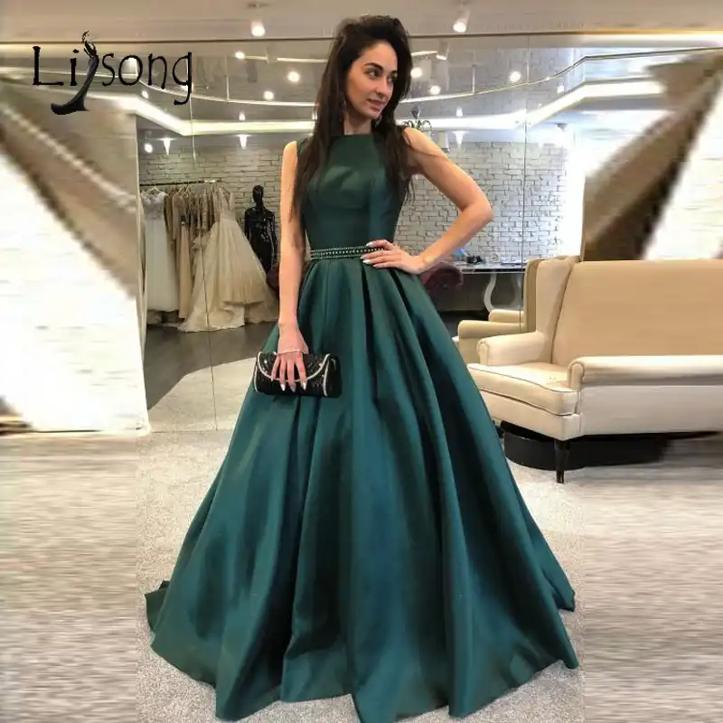 Simple Dark Green Long Evening Dresses 2019 Sparkle Beaded Crystal