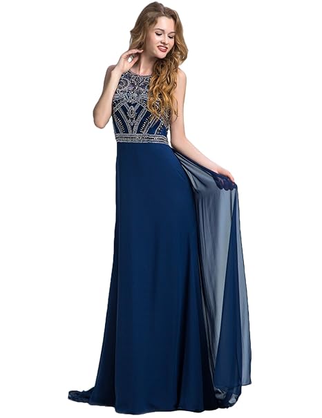 Clearbridal Women S Navy Blue Formal Long Prom Dress Round Collar