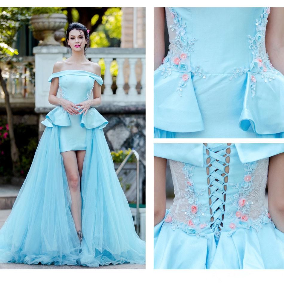 High Low Prom Dresses 2019 Pink Light Blue Tull Lace Women Party