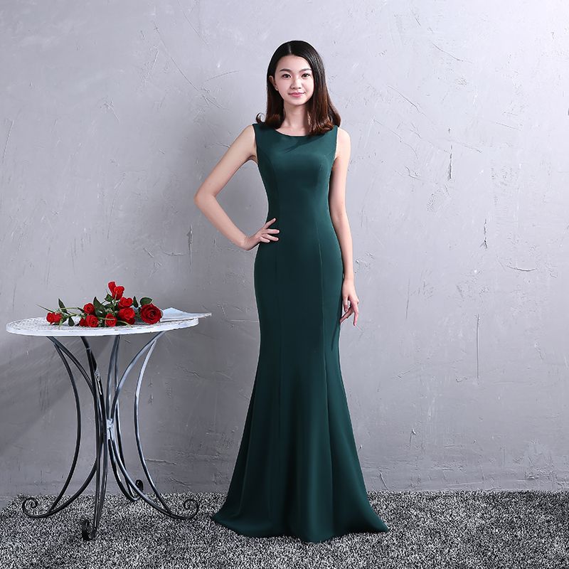 Scoop Neck Satin Mermaid Prom Dresses 2019 Dark Green Long Prom