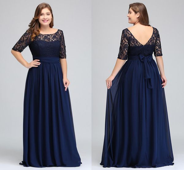 Plus Size Prom Dresses 2019 Lace Applique Half Long Sleeve