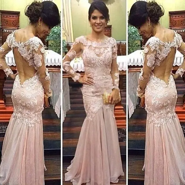 Open Back Lace Prom Dresses Long Sleeve Lace Prom Dresses Long
